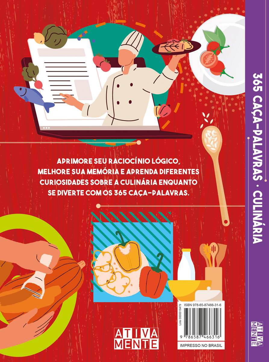Prepare-se para descobrir muitas curiosidades sobre o universo da culinária. Enquanto procura as palavras, além de se divertir, você poderá enriquecer o vocabulário, melhorar a memória e adquirir novos conhecimentos.